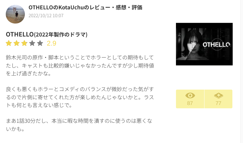 2022年7月25日にテレビ放送されたホラードラマ『OTHELLO』