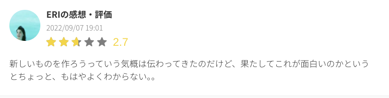 評価が高い口コミが多かったですが、その分口コミ数も多く平均★★★3でした。